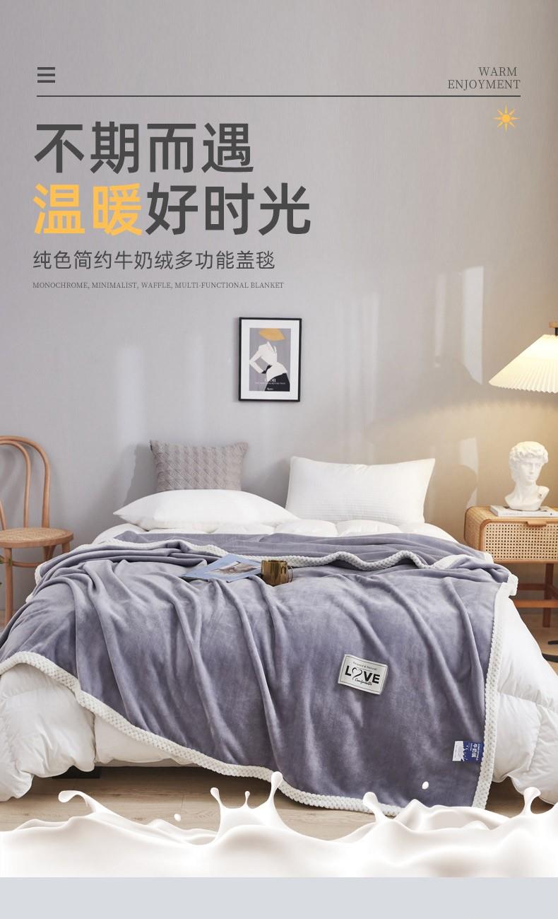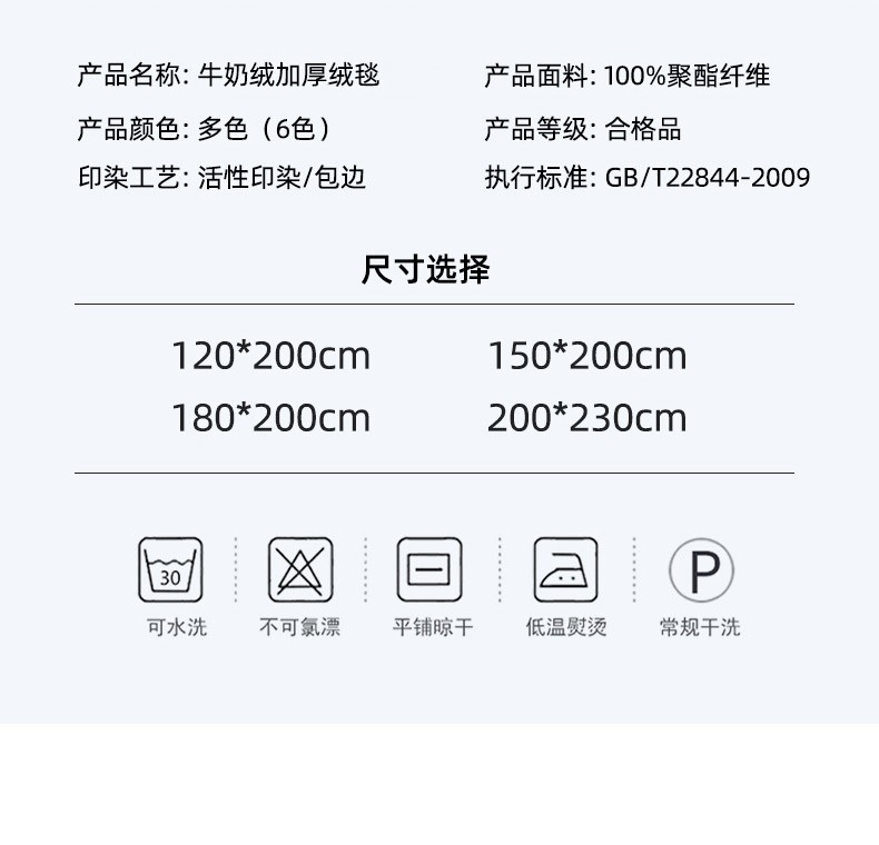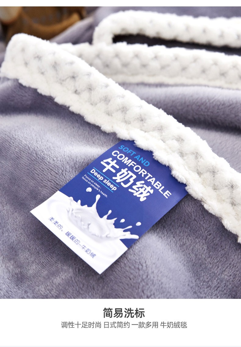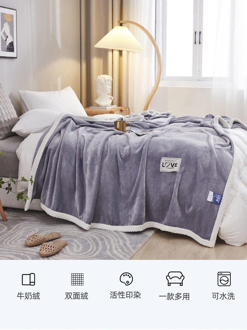 面料:牛奶絨(聚酯纖維) 邊料:貝貝絨 規(guī)格:180cm*200cm 牛奶絨是一種新型保暖纖維,具有保暖蓄熱功能,絨面豐盈,手感細(xì)膩絲滑,采用活性印染,色澤靚麗,不退色,不掉毛屑,精細(xì)做工采用貝貝絨包邊工藝,做工細(xì)密整齊,一毯多用,適用辦公居家環(huán)境,四季皆宜。