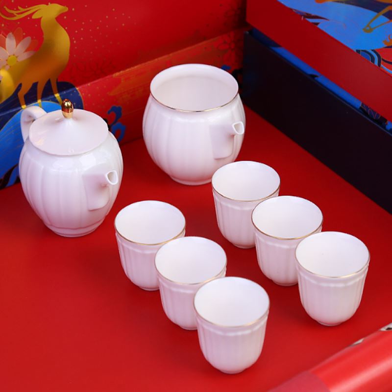 配制:1壺6杯1公道杯 1茶餅 1禮盒 手提袋 規(guī)格:壺:13.5*11cm 公道杯:11*7cm 杯:5.5*5.2cm 茶餅:19*3cm 材質(zhì):羊脂玉瓷 24K真金 推薦說明:描金羊脂玉瓷,精選優(yōu)質(zhì)高價瓷土 ,瓷質(zhì)細膩潤滑,似凝脂,如美玉。茶具描真金。 配1福鼎老白茶茶餅。品茶,賞瓷。