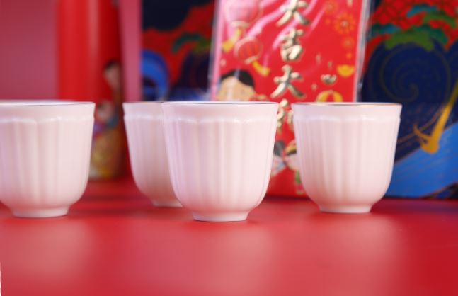 鵬翼開門紅羊脂玉瓷浮雕茶具 鵬翼開門紅羊脂玉瓷浮雕茶具