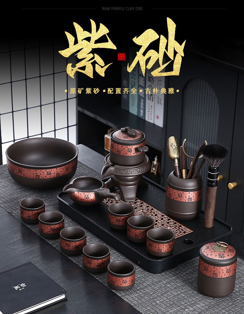 瓷語(yǔ)花香百福紫砂自動(dòng)茶具套裝