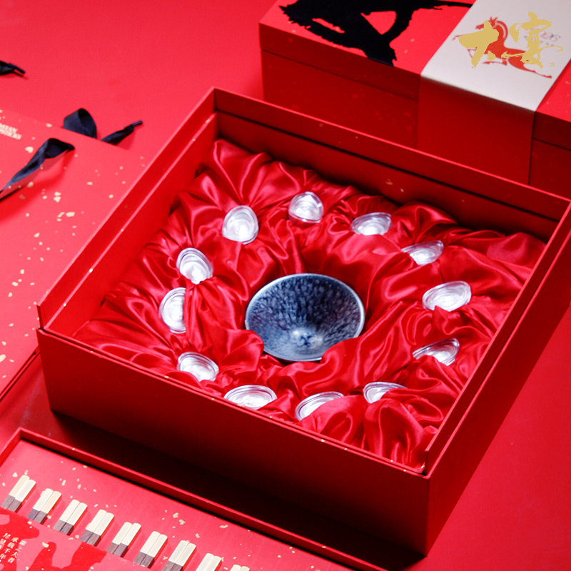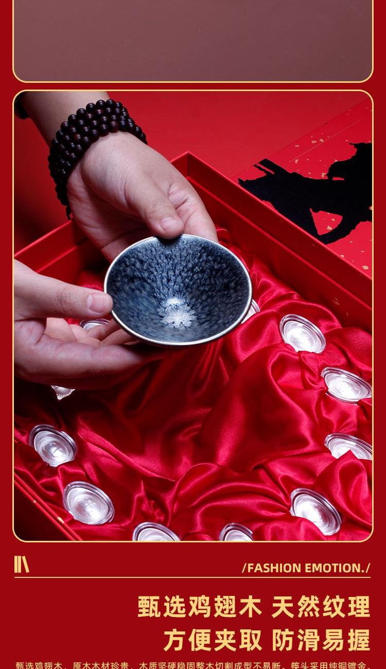 雞翅木筷x12 十二生肖銀錠元寶(10g) x12 (成色:足銀999) 非遺百花斗笠建盞*1 含收藏證書 珍貴價值999純銀10克生肖元寶總計12枚保值驚喜 非遺百花斗笠建盞非遺有收藏證書 價值感拉滿 黃銅紅木筷可以私人定制專屬 讓禮贈更用心