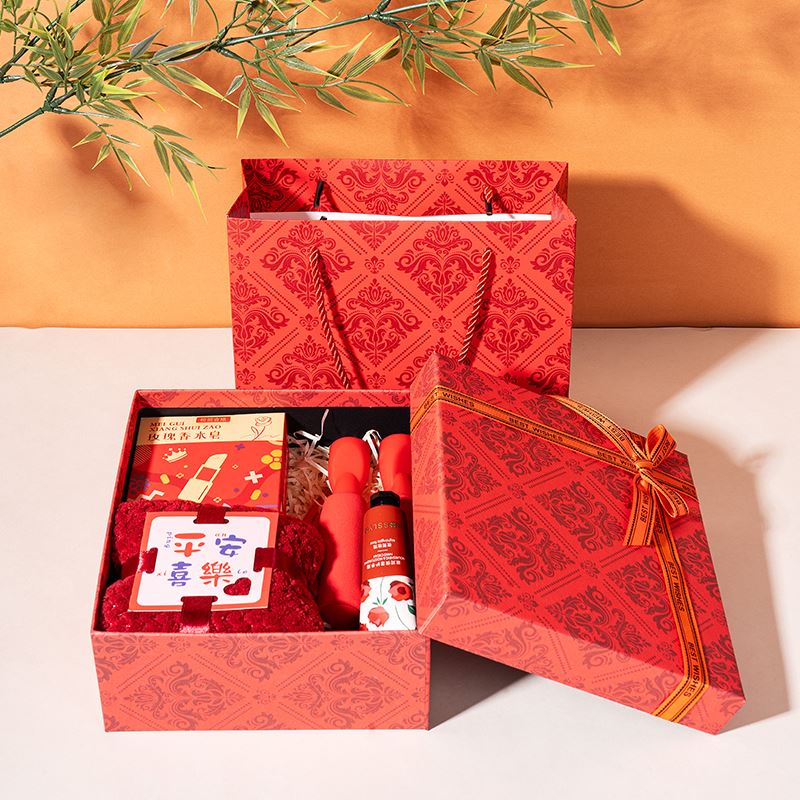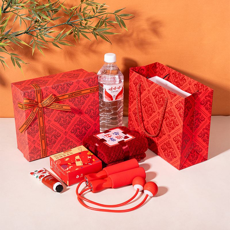 1、中國(guó)紅喜慶國(guó)潮風(fēng)禮盒,搭配同風(fēng)格手提袋,大氣有質(zhì)感,適合商務(wù)、福利、禮贈(zèng)等各渠道。