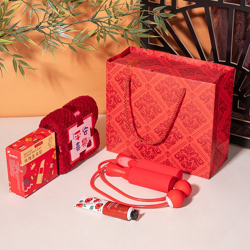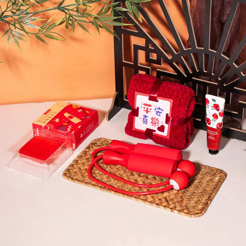 產(chǎn)品配置:國(guó)潮紅平安喜樂(lè)毛巾*1 中國(guó)紅運(yùn)動(dòng)跳繩*1