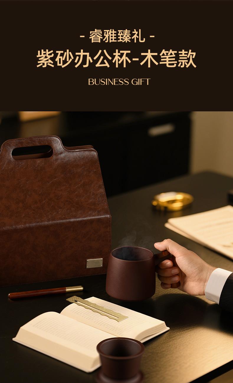 配置 · ① 知行紫砂辦公杯×1套 【宜興紫砂丨原礦紫紅泥丨600ml】 ② 知書(shū)紅木簽字筆×1只 【緬甸花梨丨精工車(chē)削丨手工拋光】 ③ 高升文創(chuàng)書(shū)簽尺×1只 【國(guó)標(biāo)純銅丨精工浮雕丨尺簽兩用】 ④ 臻禮商務(wù)大皮盒×1只 【荔紋PU皮丨走線(xiàn)油邊丨定制銘牌】 ⑤ 臻禮心意卡×1份