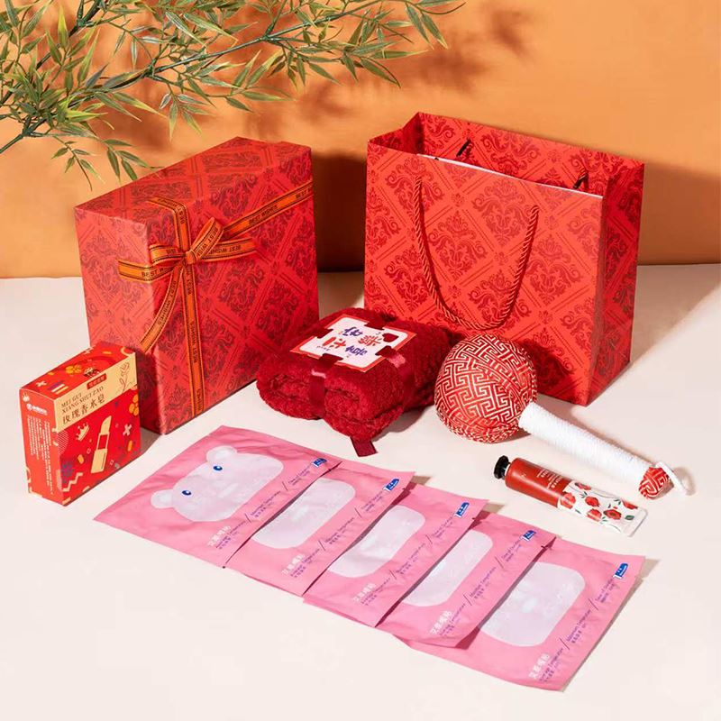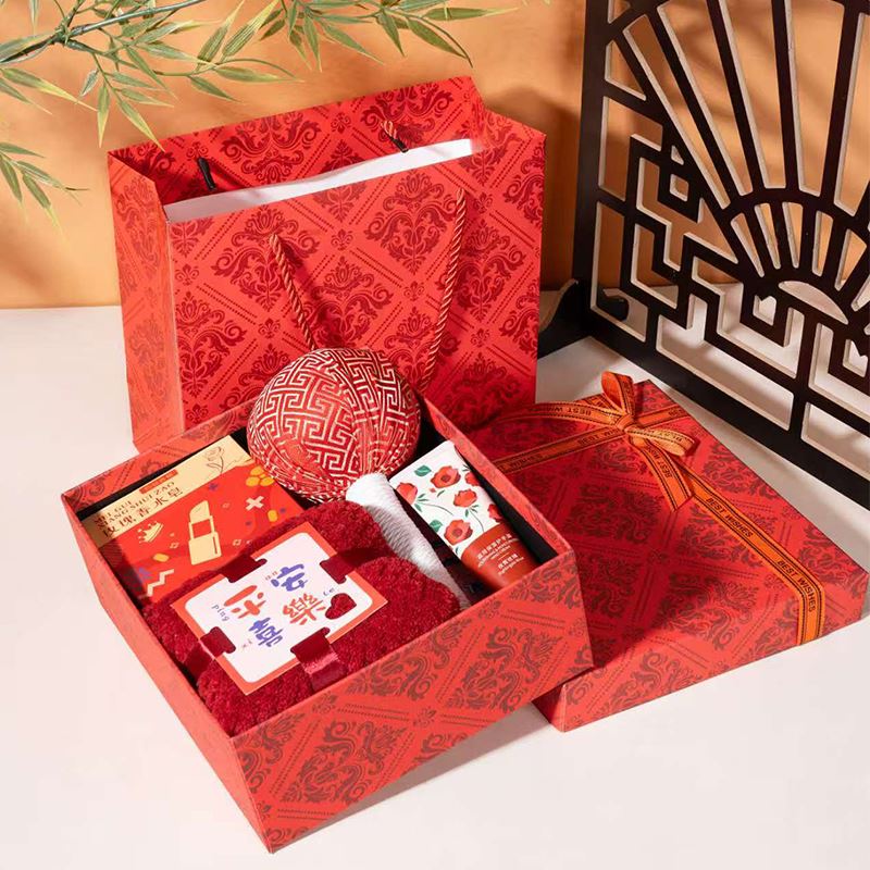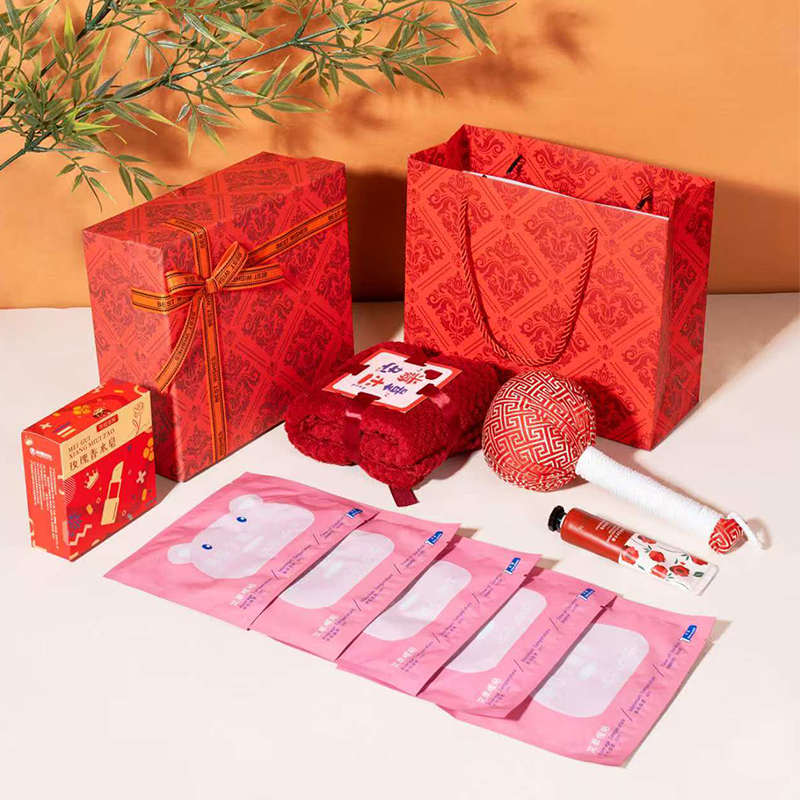 1、中國(guó)紅喜慶國(guó)潮風(fēng)禮盒,搭配同風(fēng)格手提袋,大氣有質(zhì)感,適合商務(wù)、福利、禮贈(zèng)等各渠道。