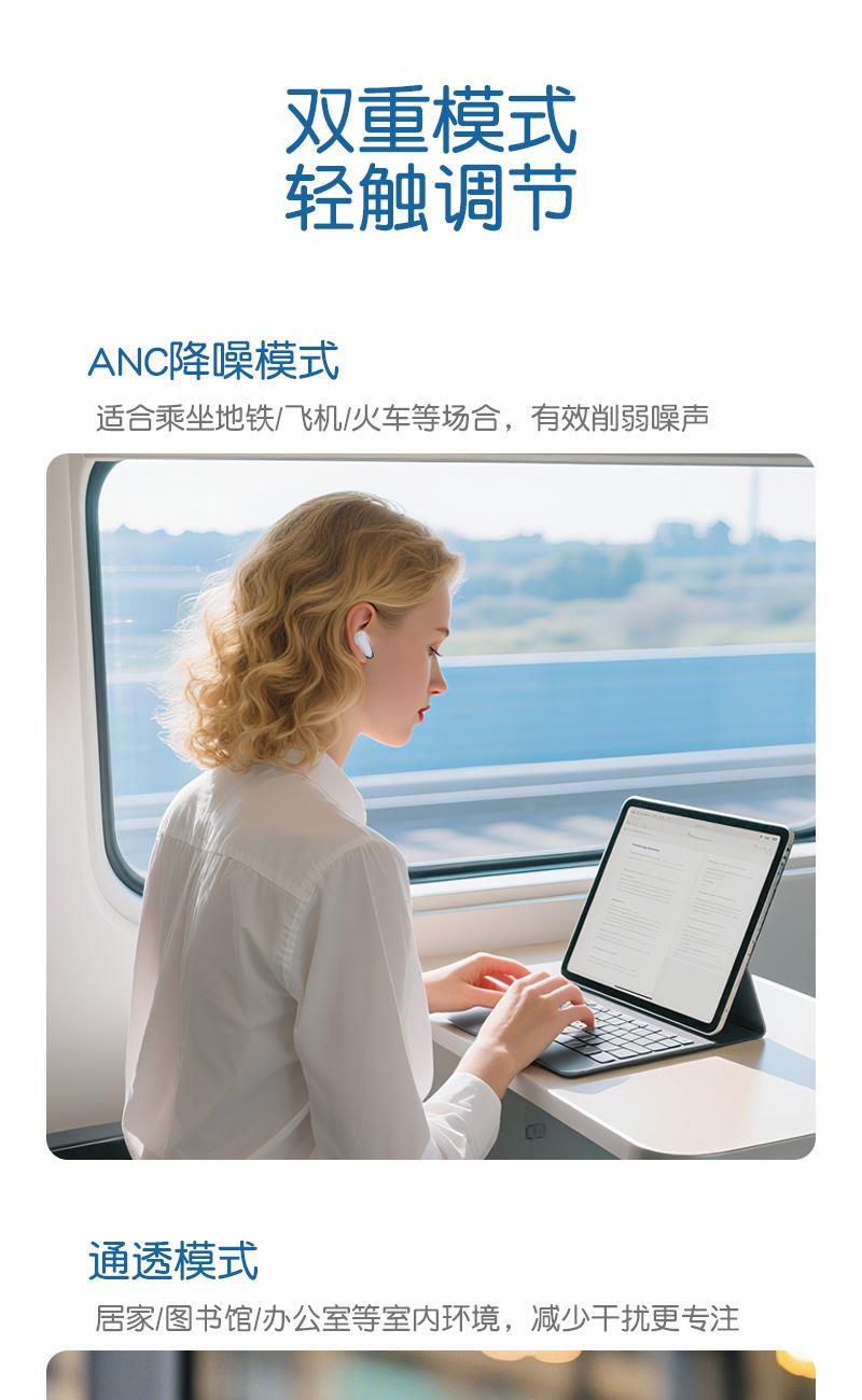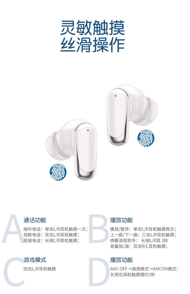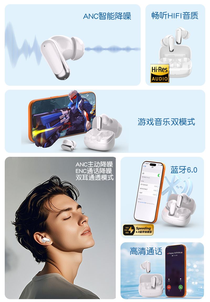 1:ANC主動降噪功能,智能完成環(huán)境自適合,走到哪都安靜