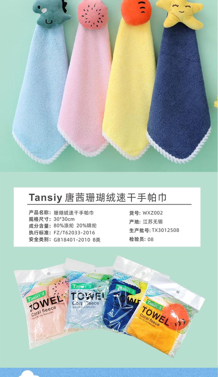 3.唐茜珊瑚絨速干手帕巾*1